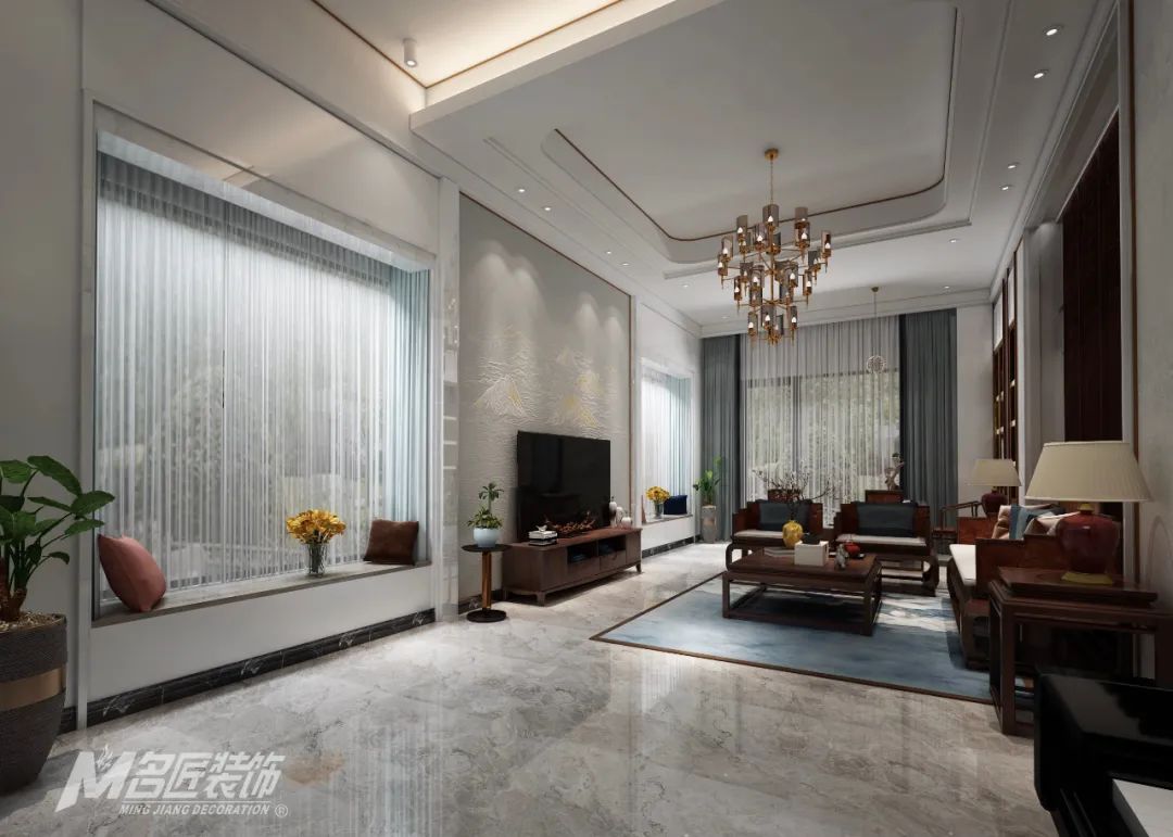 • 中山裝修效果圖翡翠御璟480平米新中式設計風格